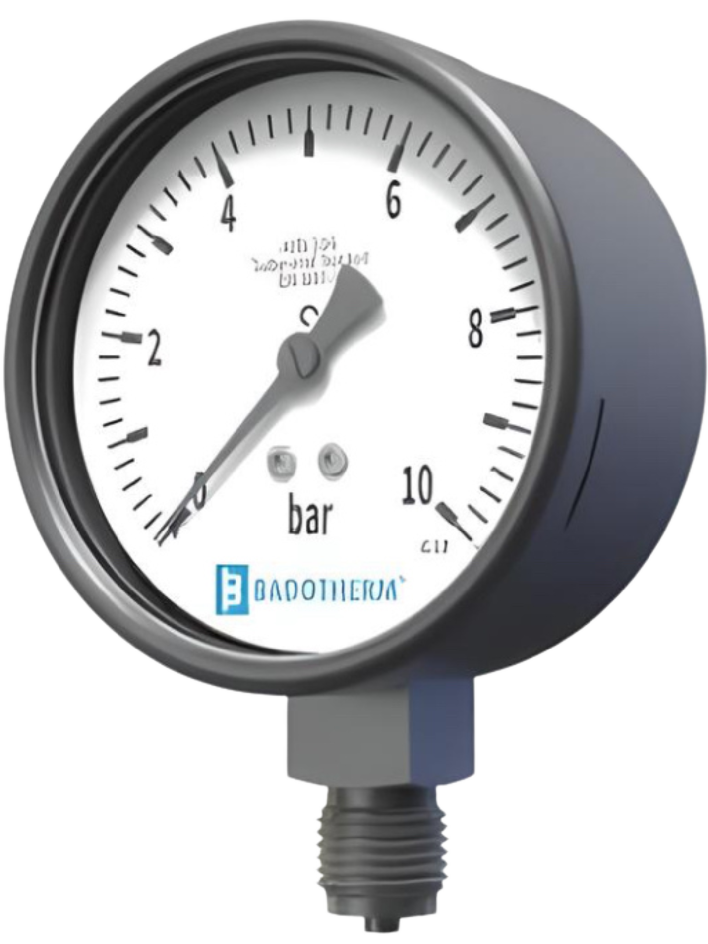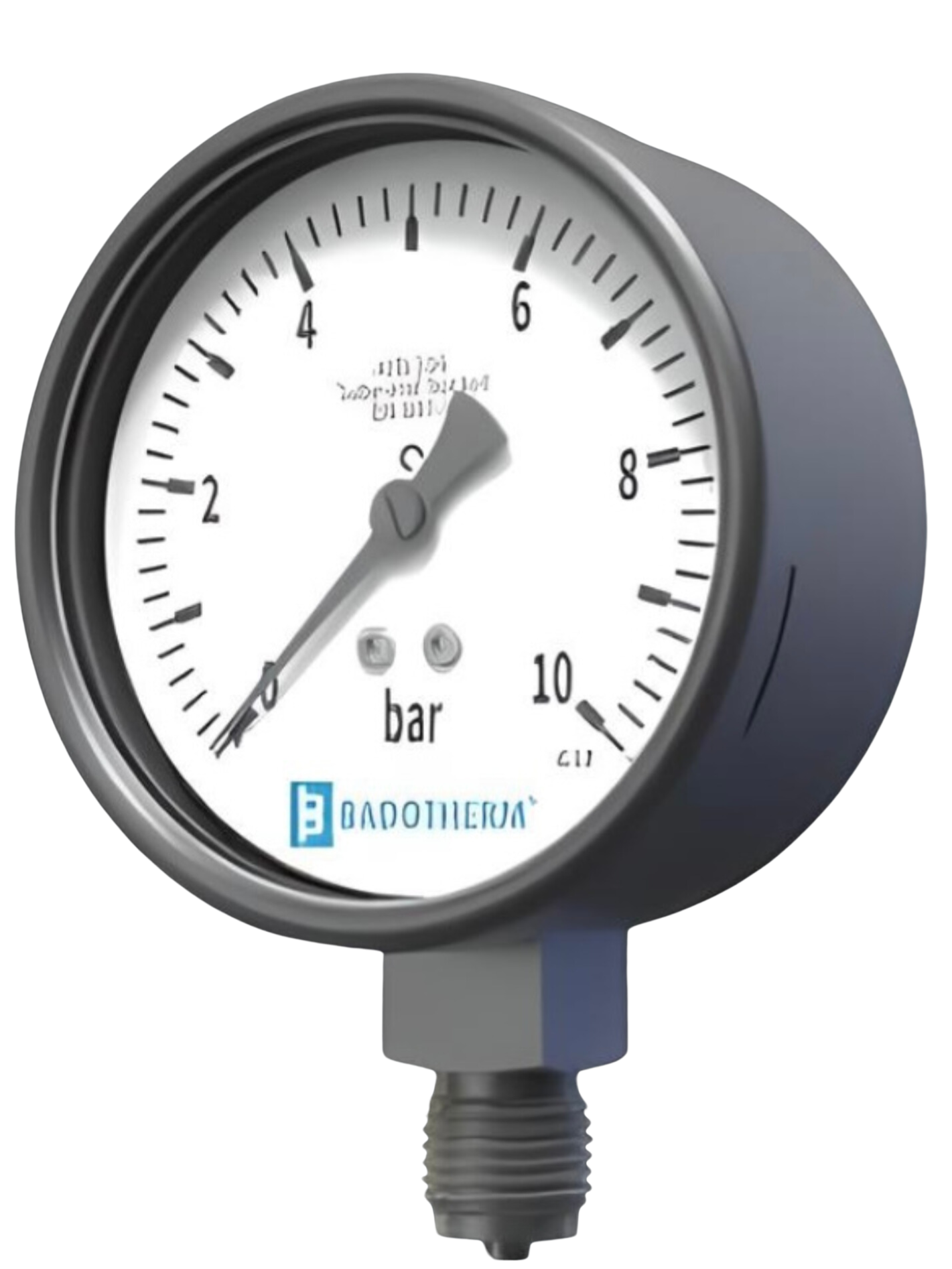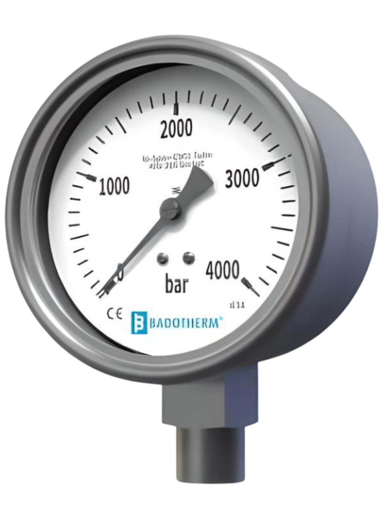 The majority of the pressure gauges are working on the bourdon tube measurement principle. Badotherm produces stainless steel and Alloy 400 internal materials in a stainless steel housing in AISI 304 or AISI316 material. The bourdon tube pressure gauges are divided into industrial pressure gauges and safety pressure gauges. The safety pressure gauges that have full blow out back and a solid front baffle wall.