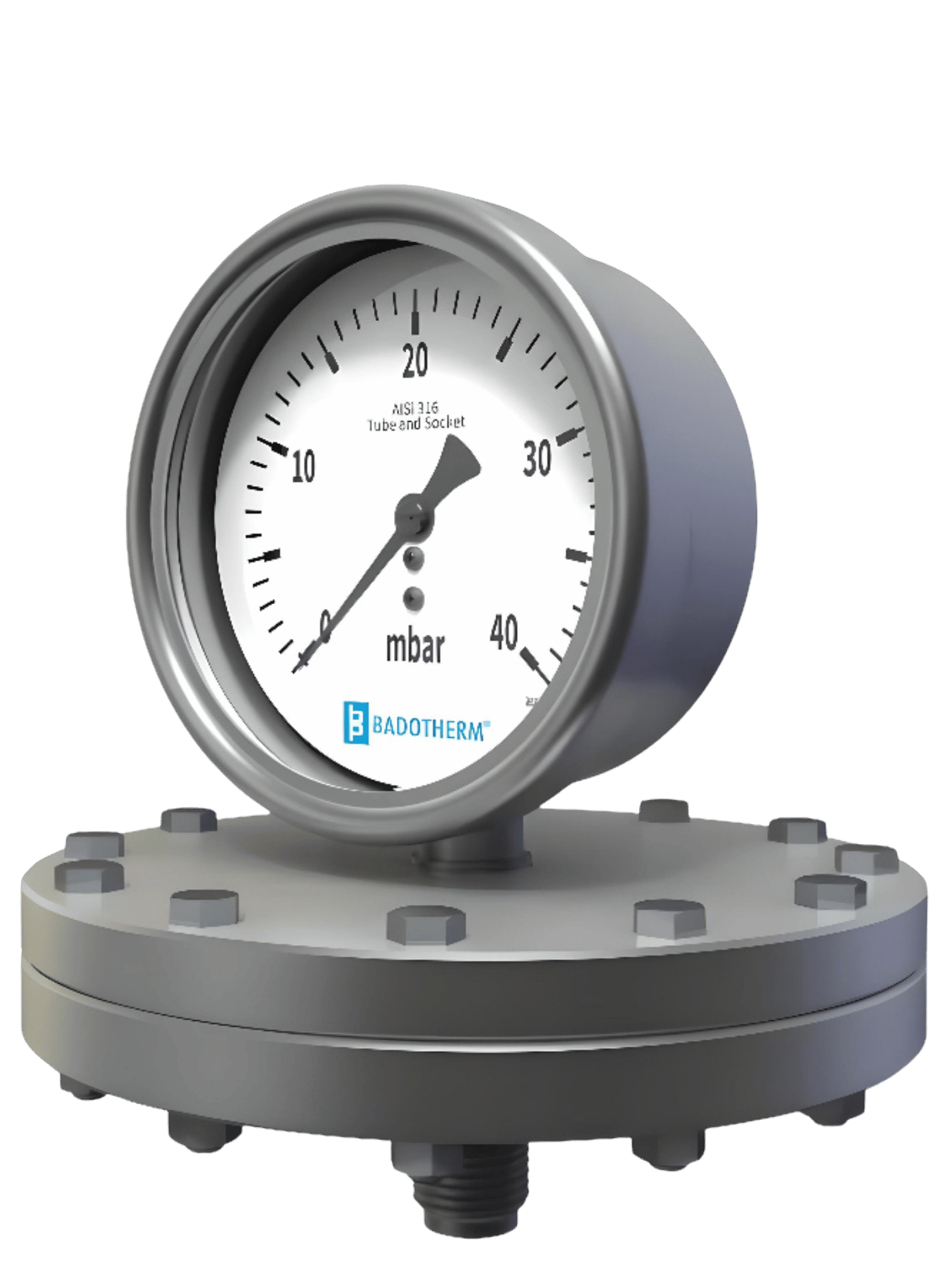 Badotherm pressure gauge model BDT12 is a diaphragm type pressure gauge and suitable for all gaseous and liquid media, as well as for viscous media and suspended solids. These gauges can be made with threaded connections and flanged connections according ANSI, DIN, and JIS standards.